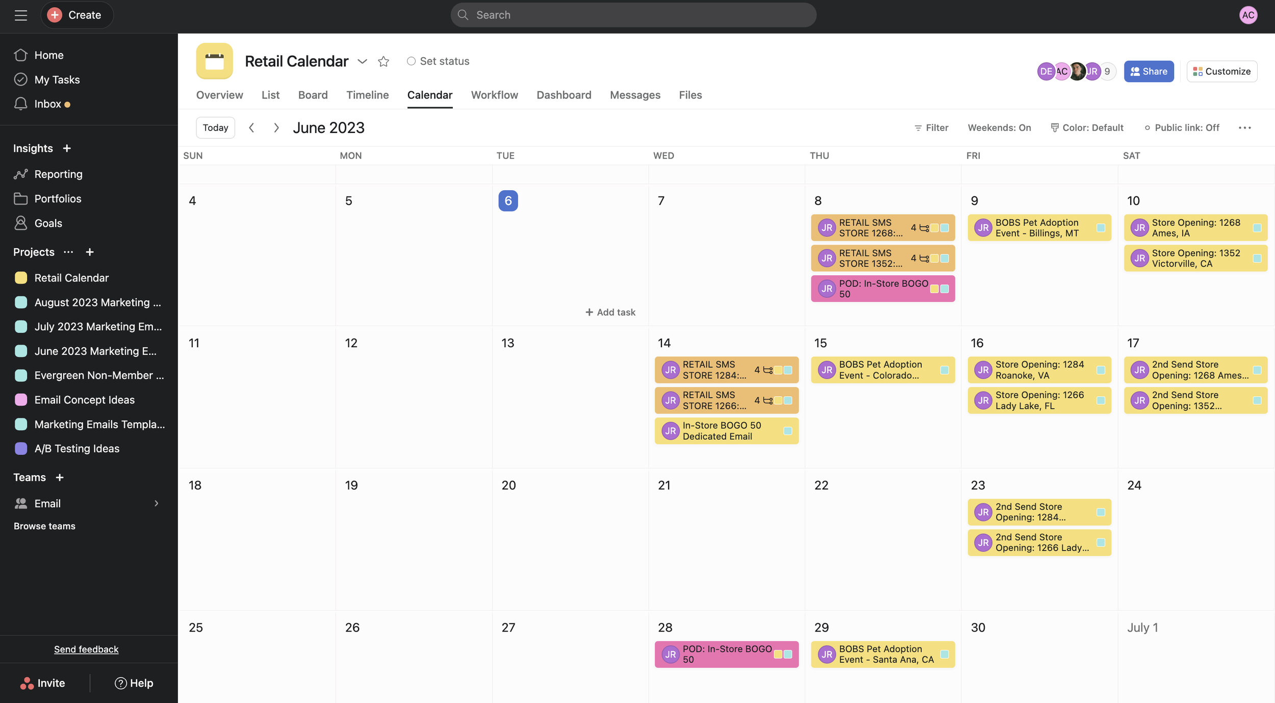 We use Asana to track our content calendar, Attentive for SMS marketing, and Salesforce Marketing Cloud for email.
